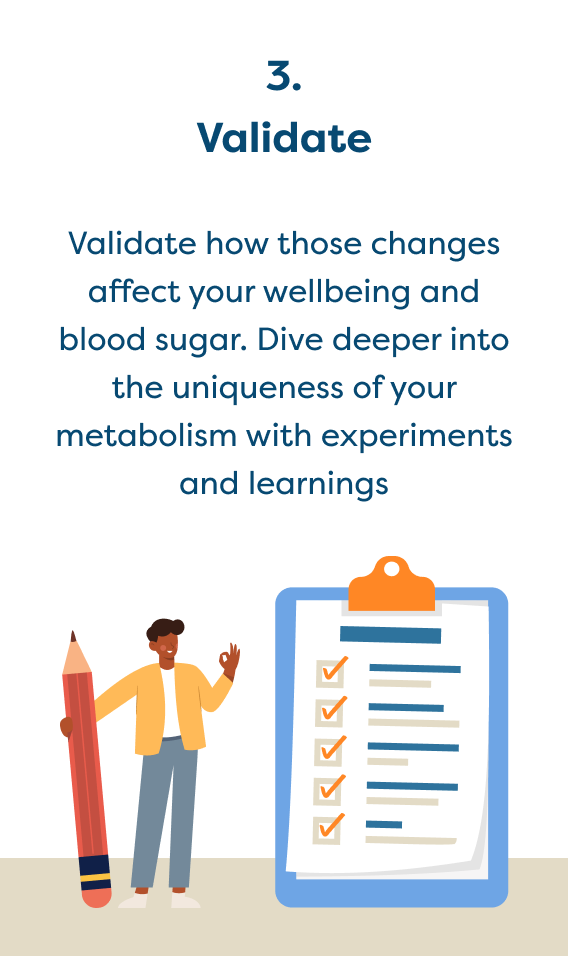 Understand how your blood sugar reacts to food and activity. Learn which ingredients and meals work for you. So you can improve with simple adjustments.